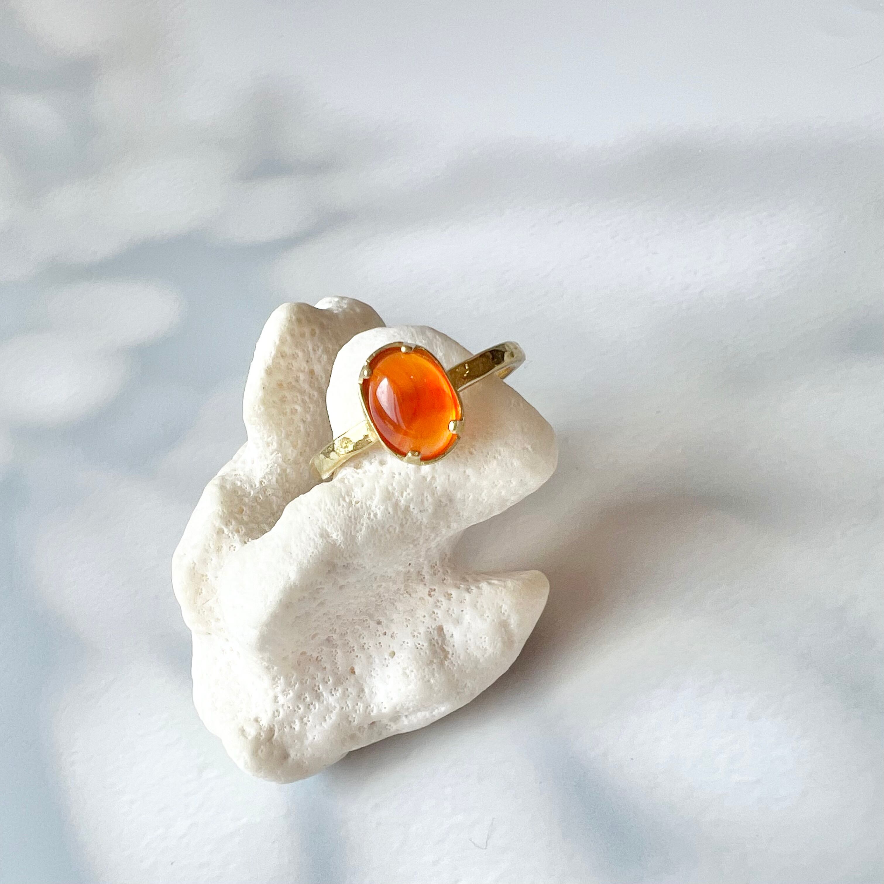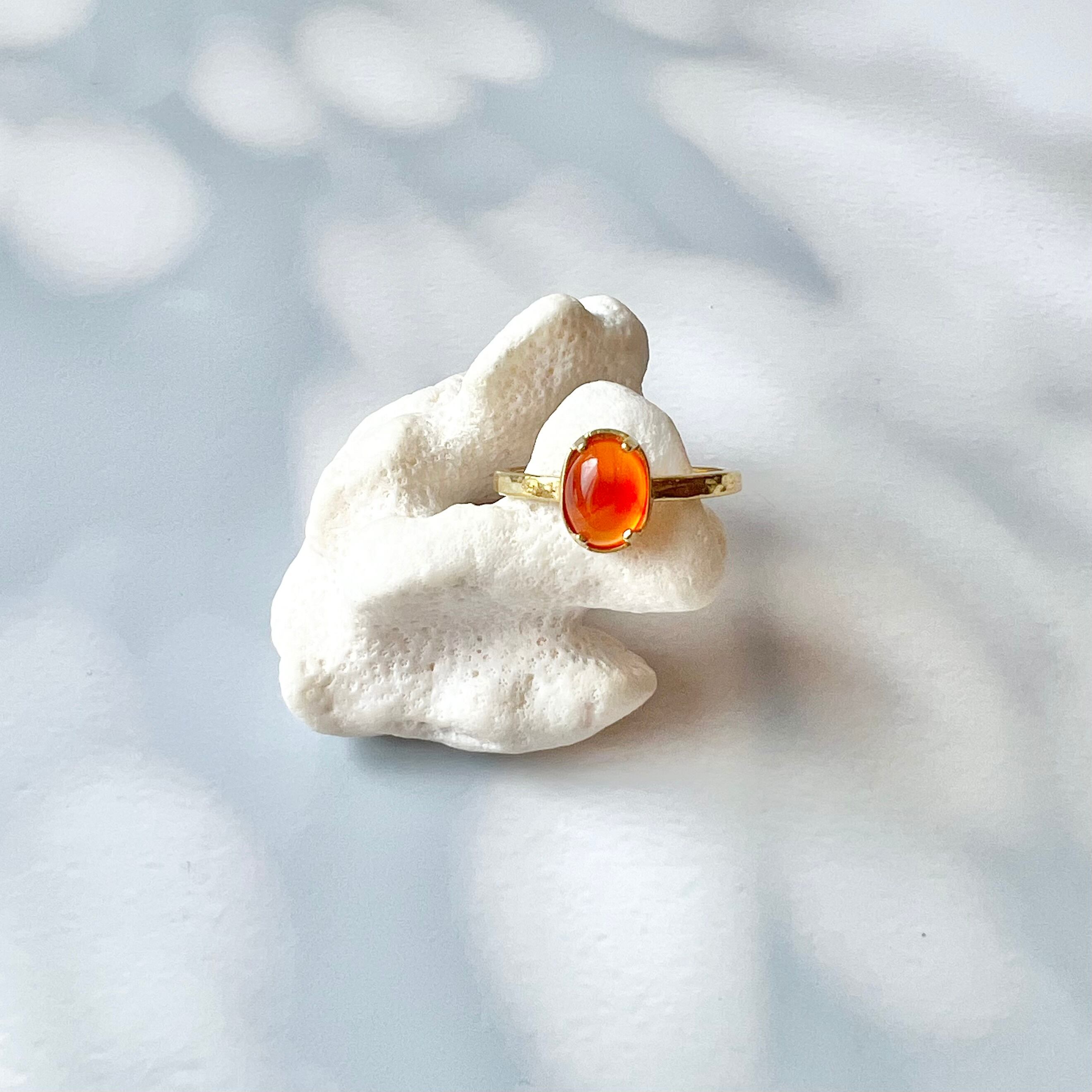 つるんと可愛いカーネリアンのストーン真鍮リング。