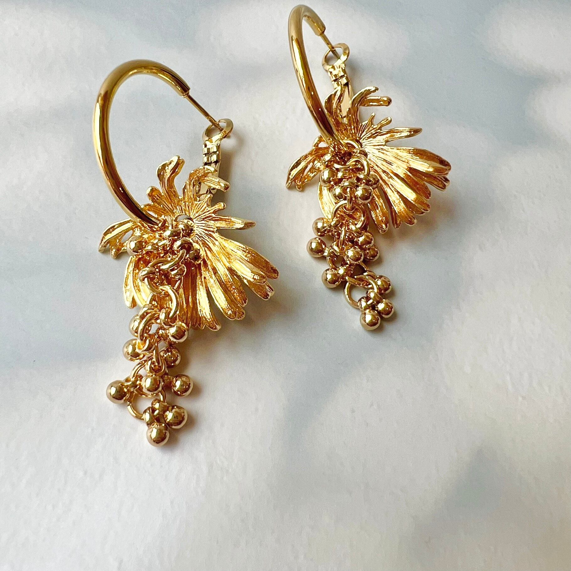 ゴールドでまとめ甘さを抑えたフラワーアイテム。