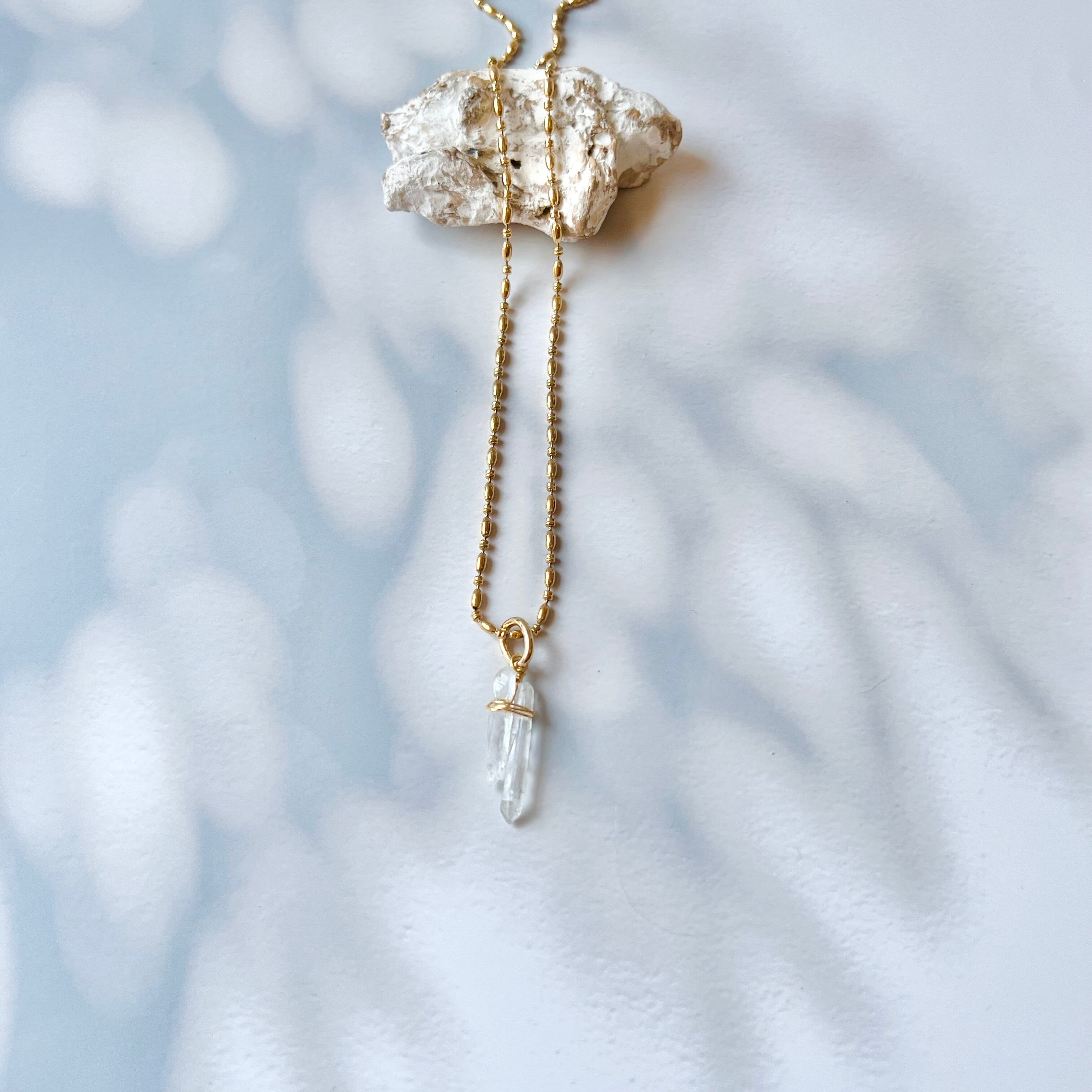 水晶×デザインチェーンネックレス サージカルステンレス