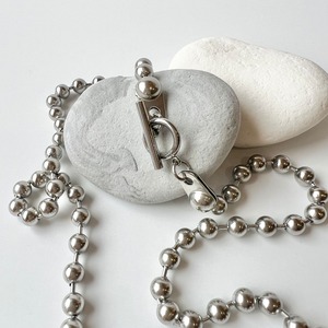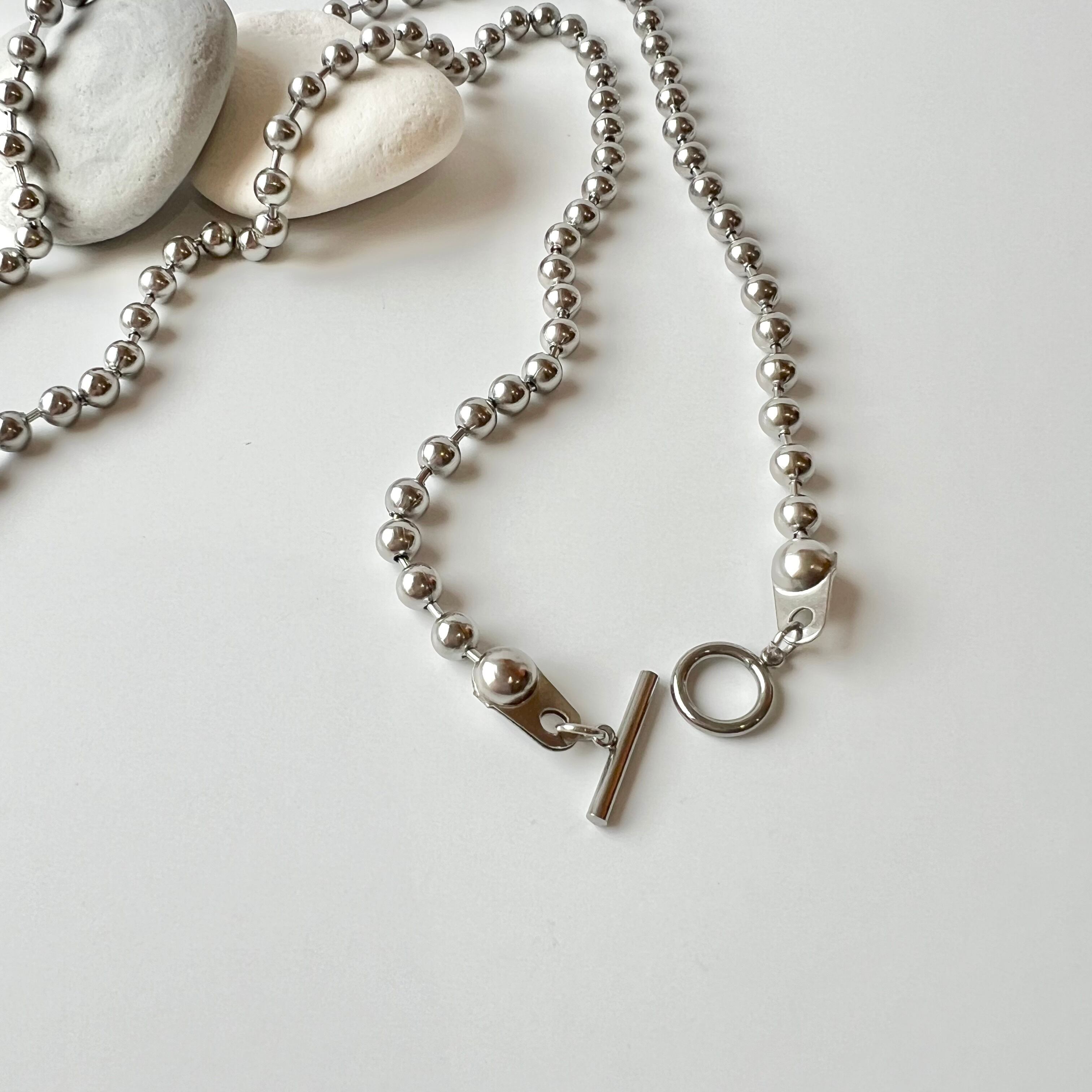 【Silver】ボールチェーンロングネックレス<オールサージカルステンレス>
