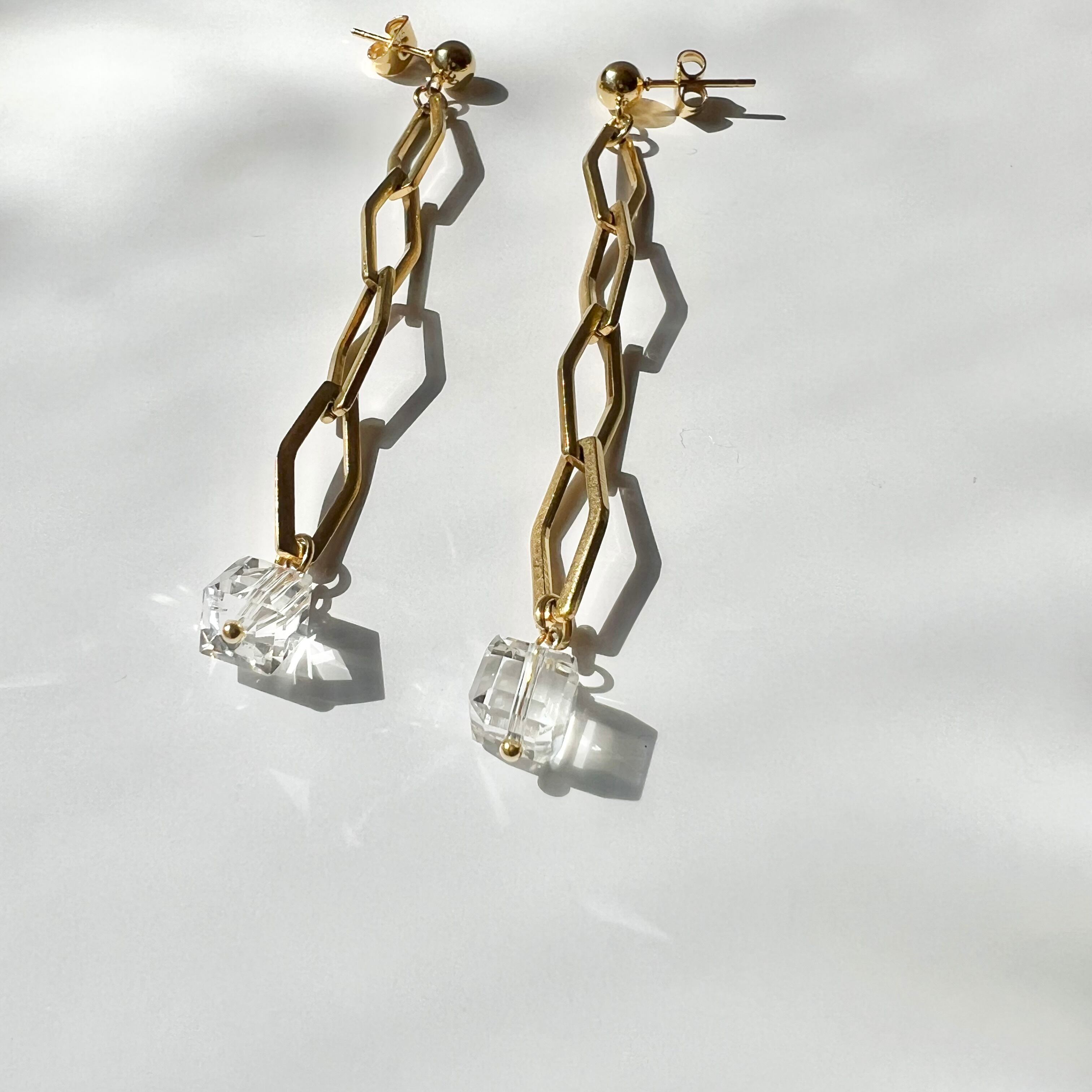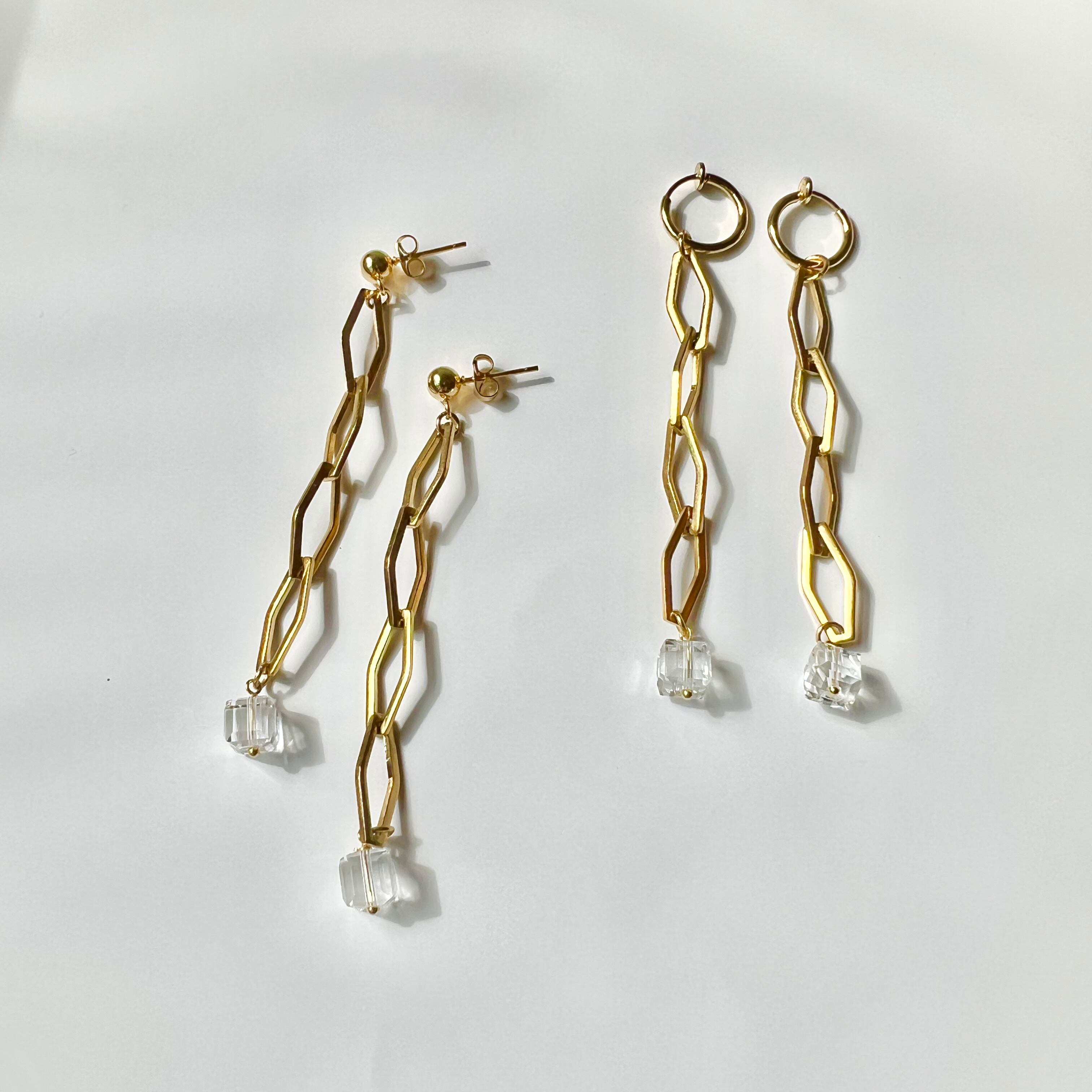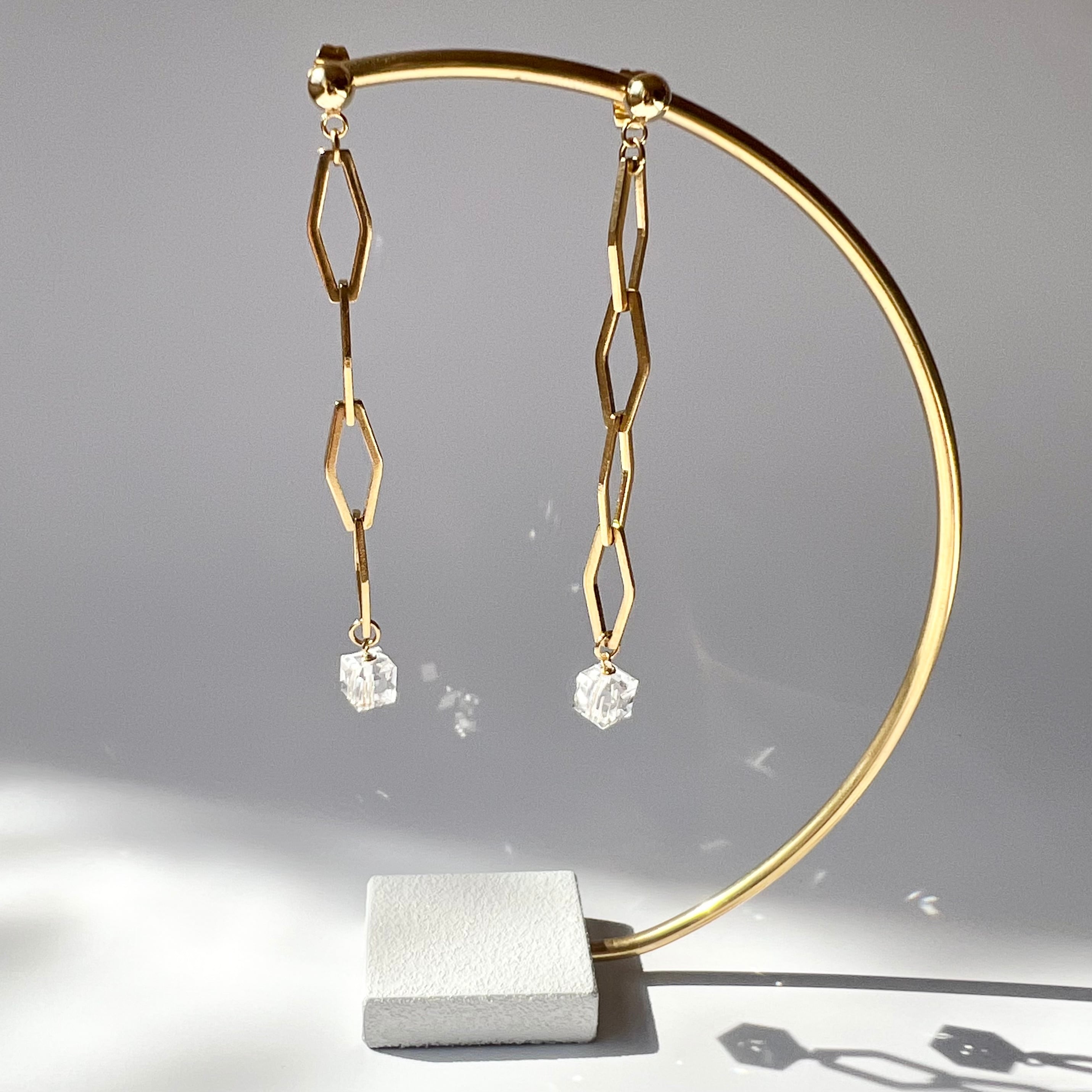 \\舞台挨拶着用//キューブ水晶ダイヤチェーンピアス・イヤリング